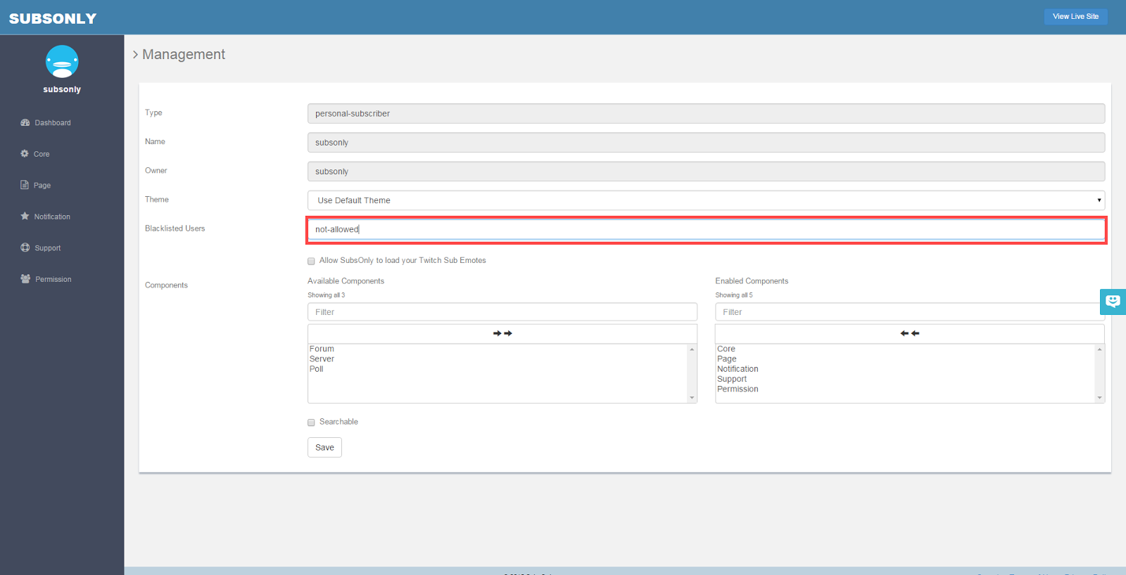 Here you can select if you would like to have your Twitch emotes be usable on your site. This will allow users to use your emotes in your forums and in comments.