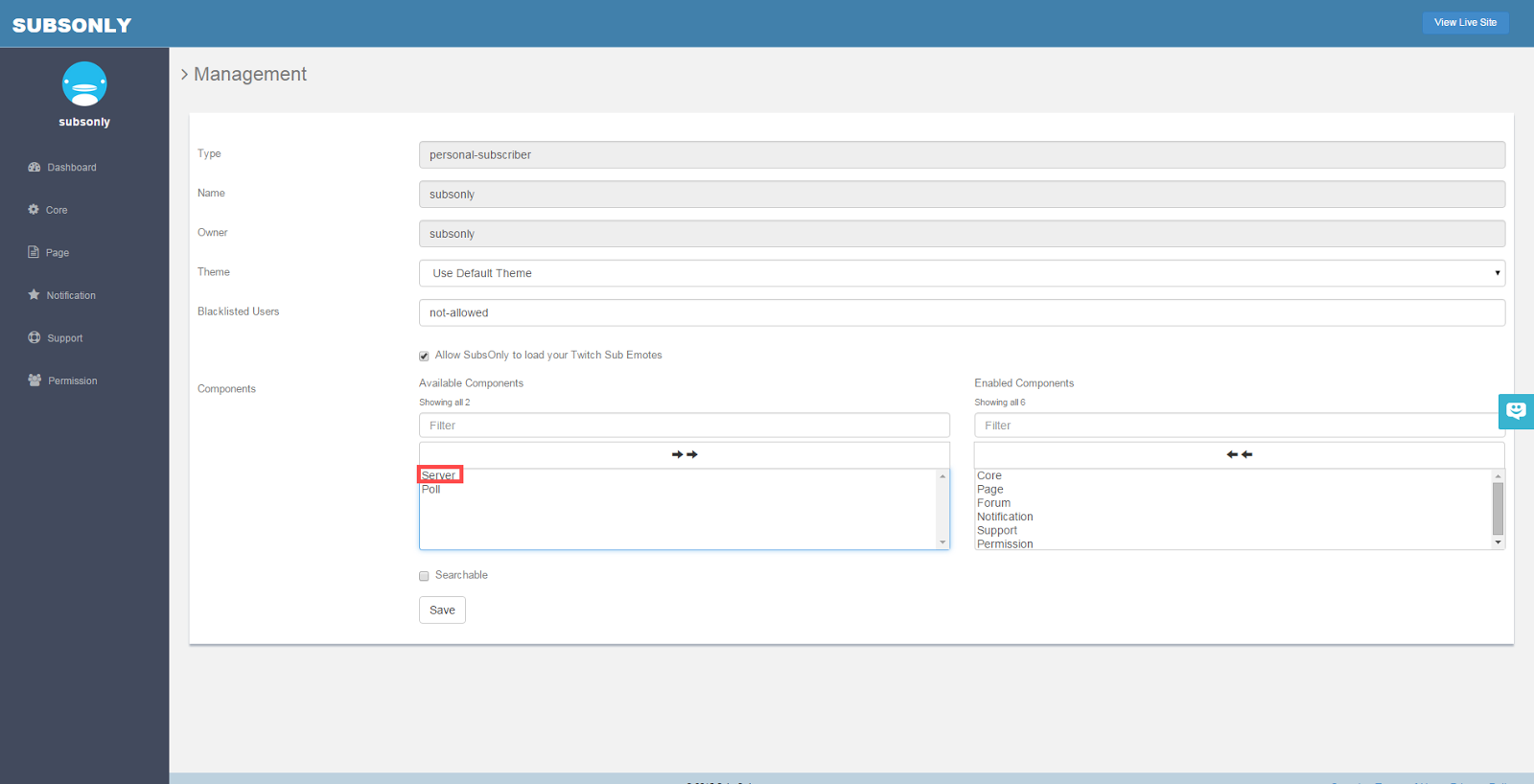 To add the Forum feature, go to the Core area of your dashboard. Under components, there is a box on the left with what features you can add to your site. If you click on Forums, it will move to the right box and become part of your site.
